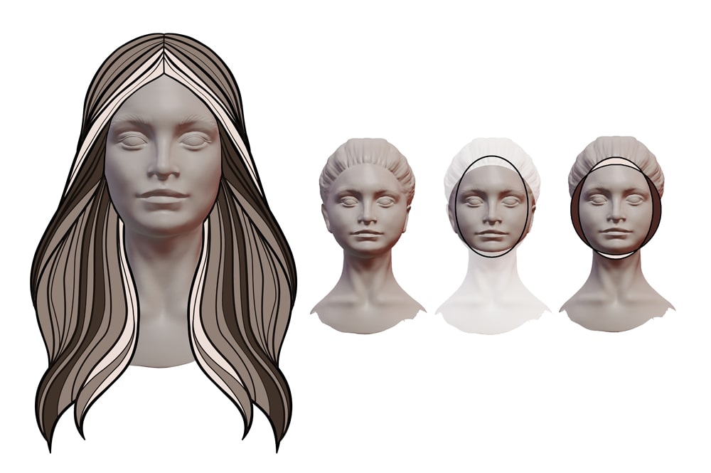 Η τέχνη του contouring –γνωστή εδώ και χρόνια από το μακιγιάζ– αναπτύχθηκε με στόχο να αναδειχθούν ή να αποκρυφθούν σημεία του προσώπου μας, ώστε αυτό να φαίνεται οβάλ, σχήμα που θεωρείται το ιδανικό. Σκούρες και ανοιχτόχρωμες αποχρώσεις μάς βοηθούν να δημιουργήσουμε ένα πρόσωπο ελκυστικό. Το ίδιο ακριβώς συμβαίνει με το κούρεμα και το χτένισμα. Δημιουργούμε ή αφαιρούμε όγκους, ώστε να διαμορφώσουμε μια διαφορετική εικόνα του προσώπου. Ο τελικός στόχος είναι, «παίζοντας» με το φως και τη σκιά, να δημιουργήσουμε μια οφθαλμαπάτη και το πρόσωπο να δείχνει οβάλ.